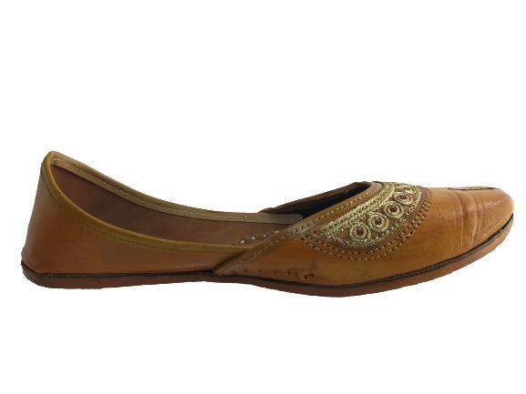Raja Shoes Women's 28 Pure Leather Punjabi Jutti Ethnic Handmade Casual Mojari (Tan) :: RAJASHOES