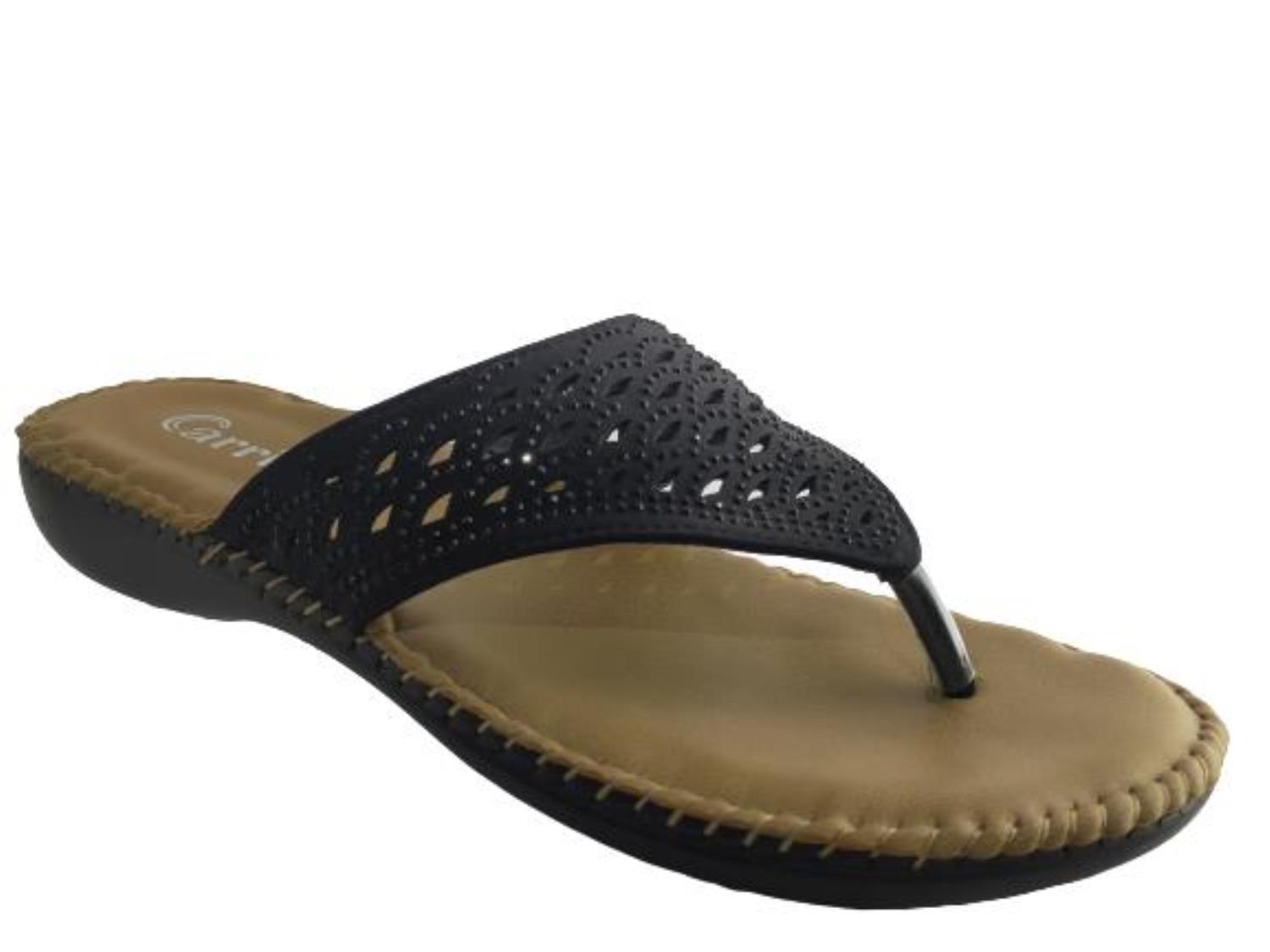 Carrie Brand Women's CM-6157 Flat Comfort Casual Chappal Flipflop Slippers (Black) :: RAJASHOES