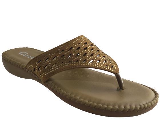 Carrie Brand Women's CM-6157 Flat Comfort Casual Chappal Flipflop Slippers (Camel) :: RAJASHOES