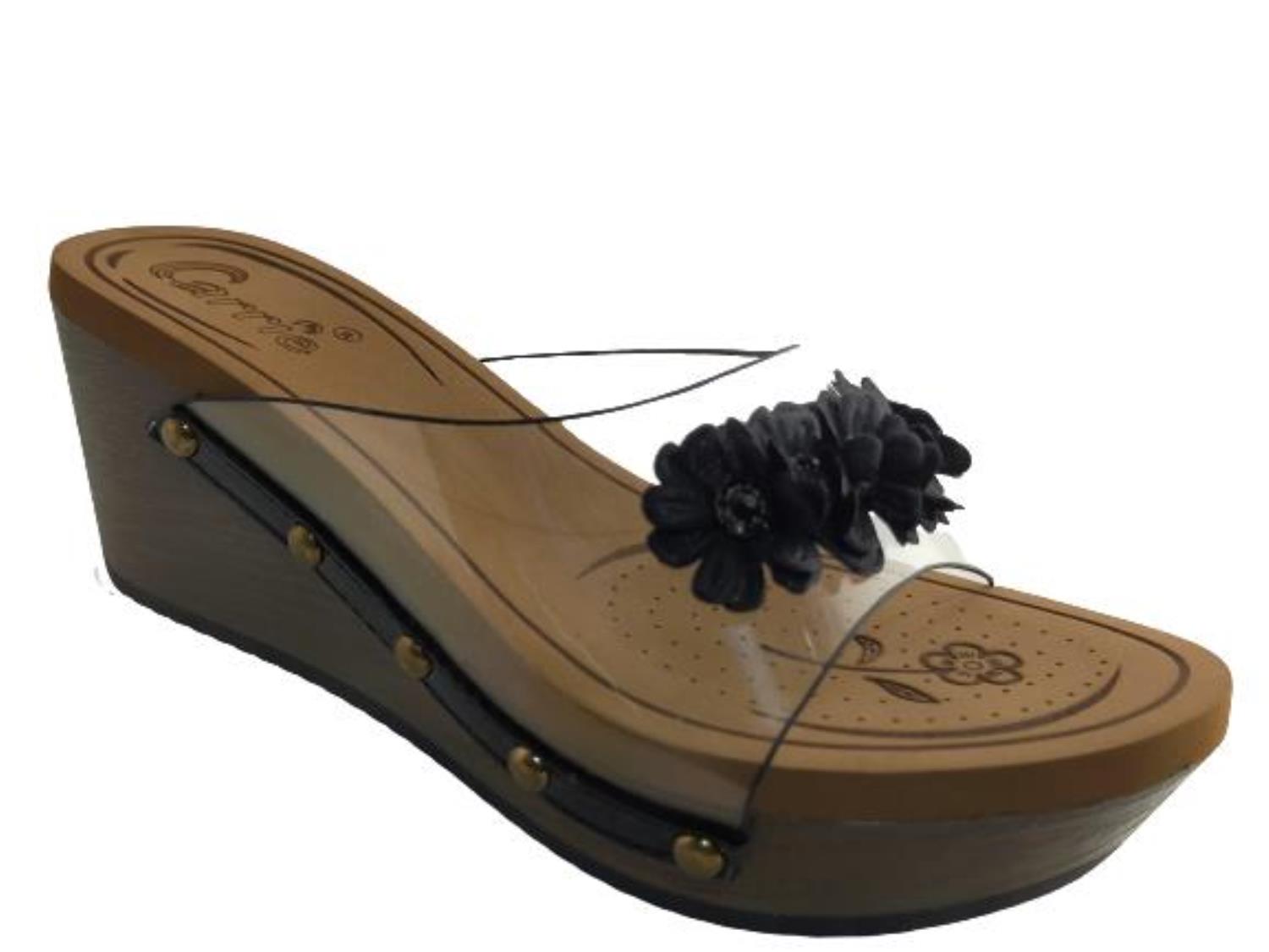 Carrie Brands Women's LF-2022 Heel Platform Wedge Fashion Flipflop Slippers (Black)