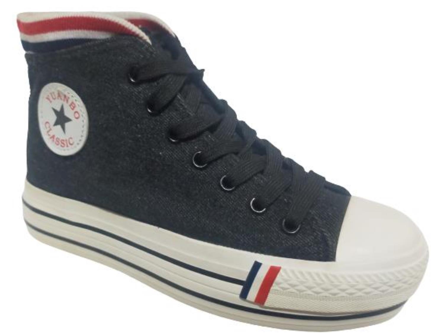 Yuanbo Classic Brand Women's 6631 Black Canvas Laced Sneaker Shoes