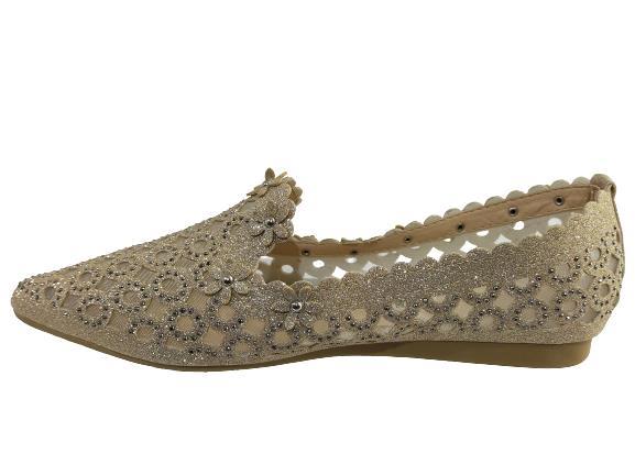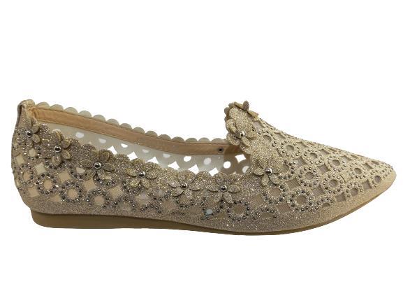 Shinny Brands Women's A900-611 Partywear Wedding Flat Belly Shoes (Golden)