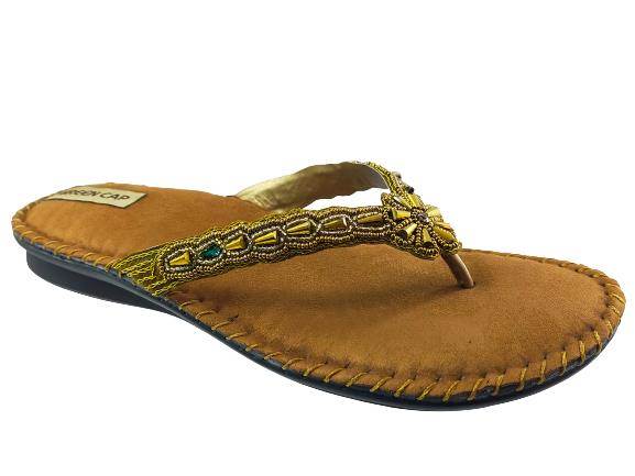 Green Cap Brand Women's C76-101 Flat Soft Casual Comfort Chappal Flipflop (Antic) :: RAJASHOES
