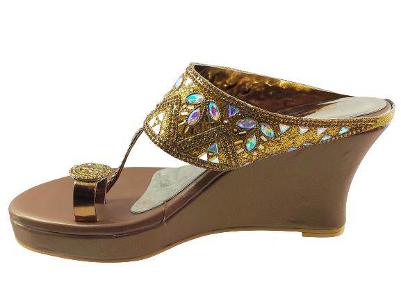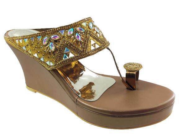 Green Cap Brands Women's S16-319 Partywear Wedding Platform Heels Chappal (Antic) :: RAJASHOES