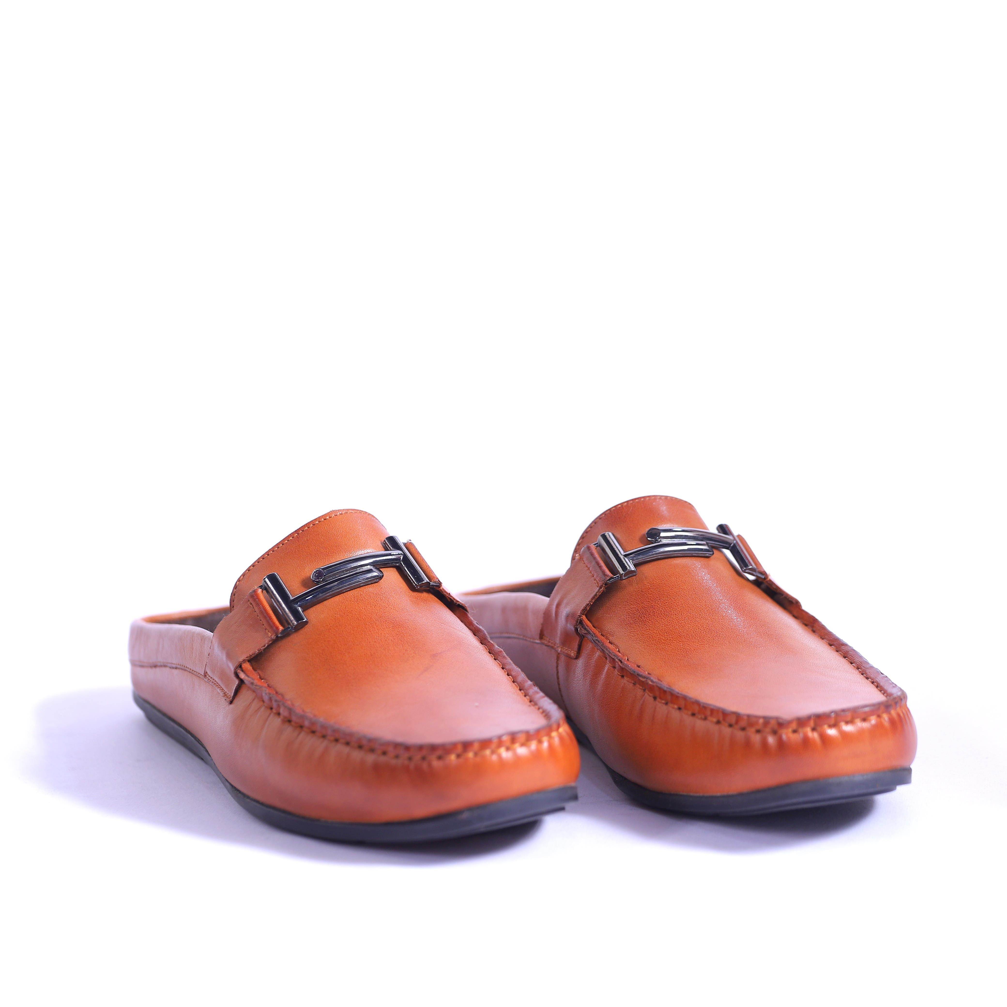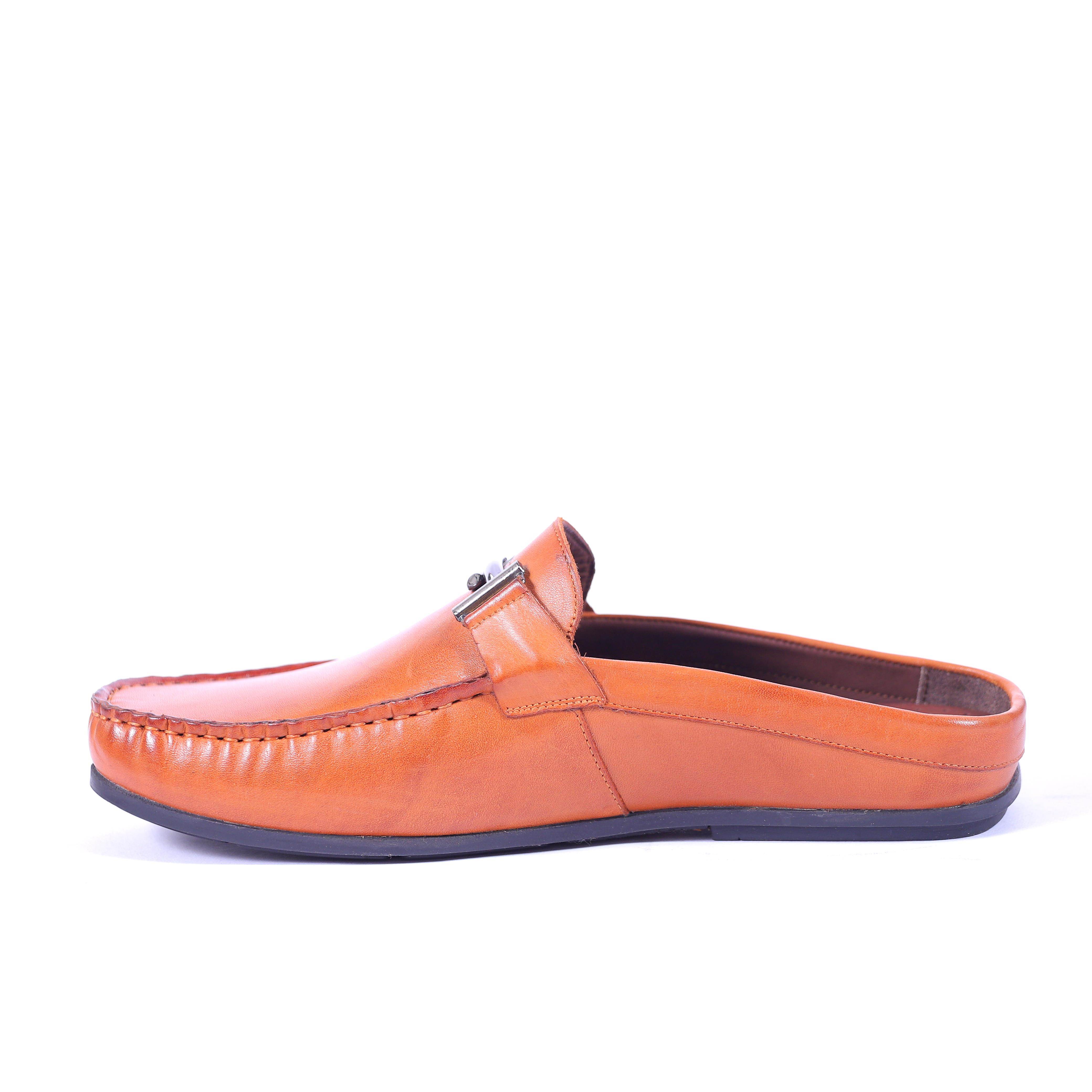 CHRIS BROAD BRAND MENS ORIGINAL LEATHER CASUAL SLIPONS LOAFERS MULES-01 (TAN) :: RAJASHOES