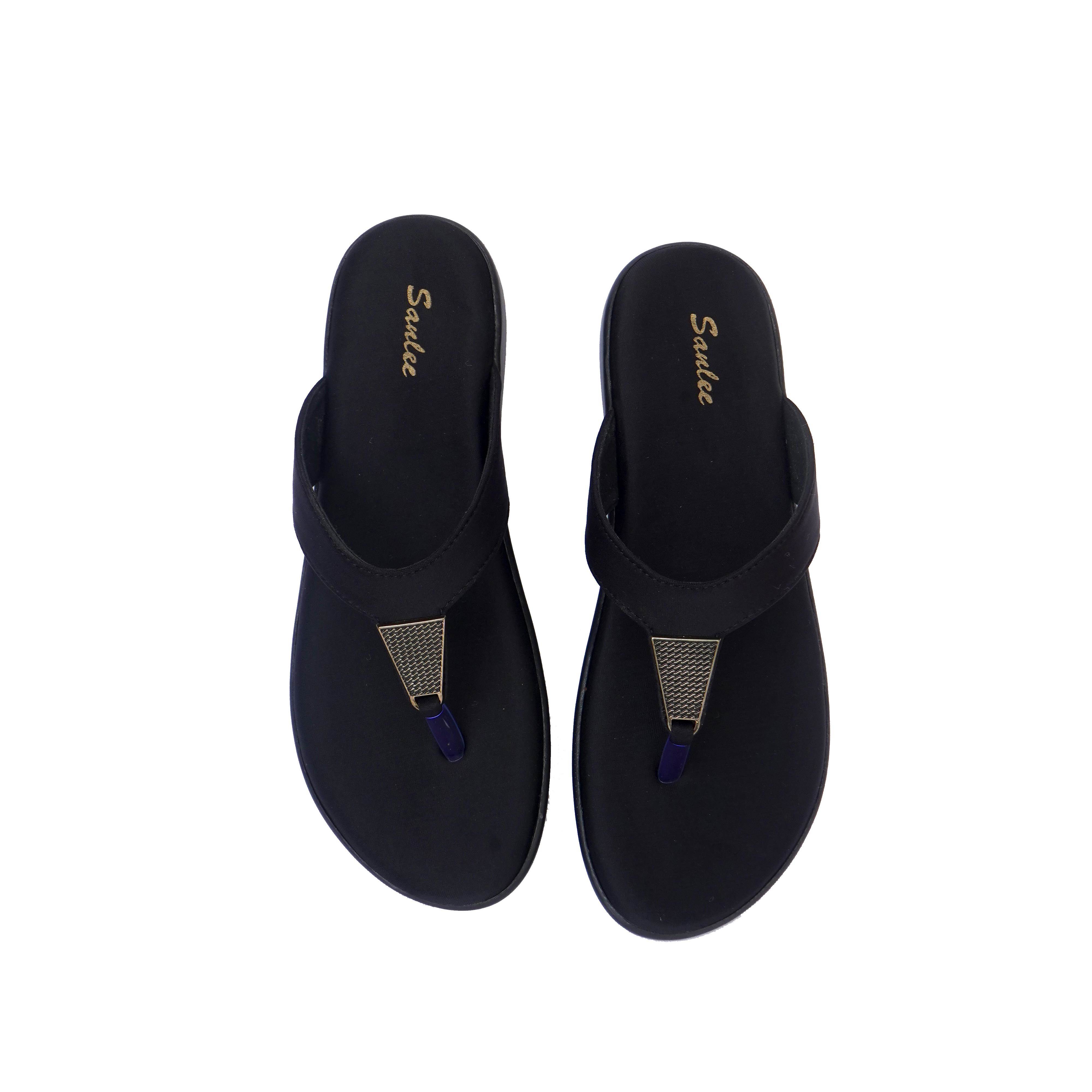 Sanlee Brand Womens Casual Flat Flipflop Slipons Sandal LCP2348 (Black) :: RAJASHOES