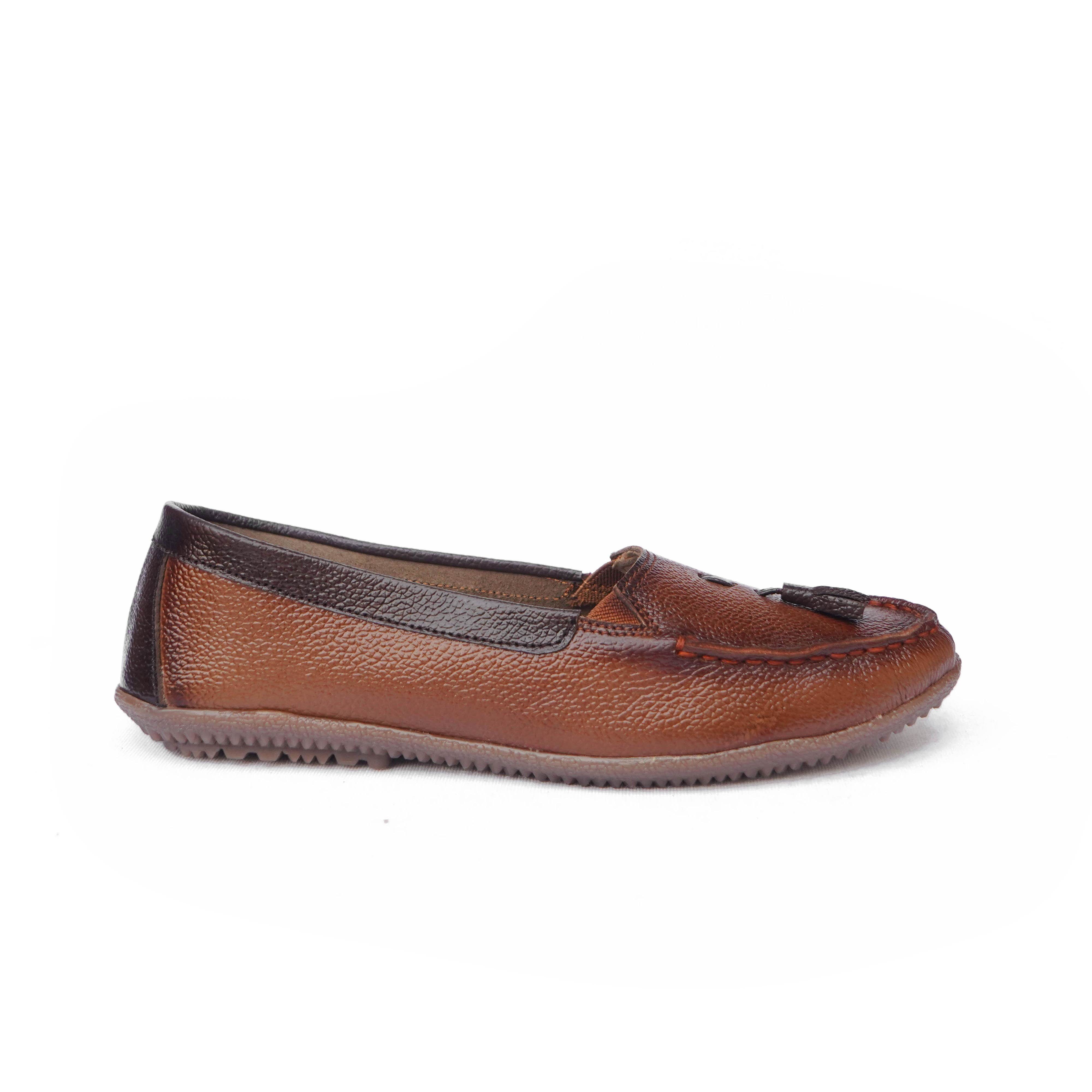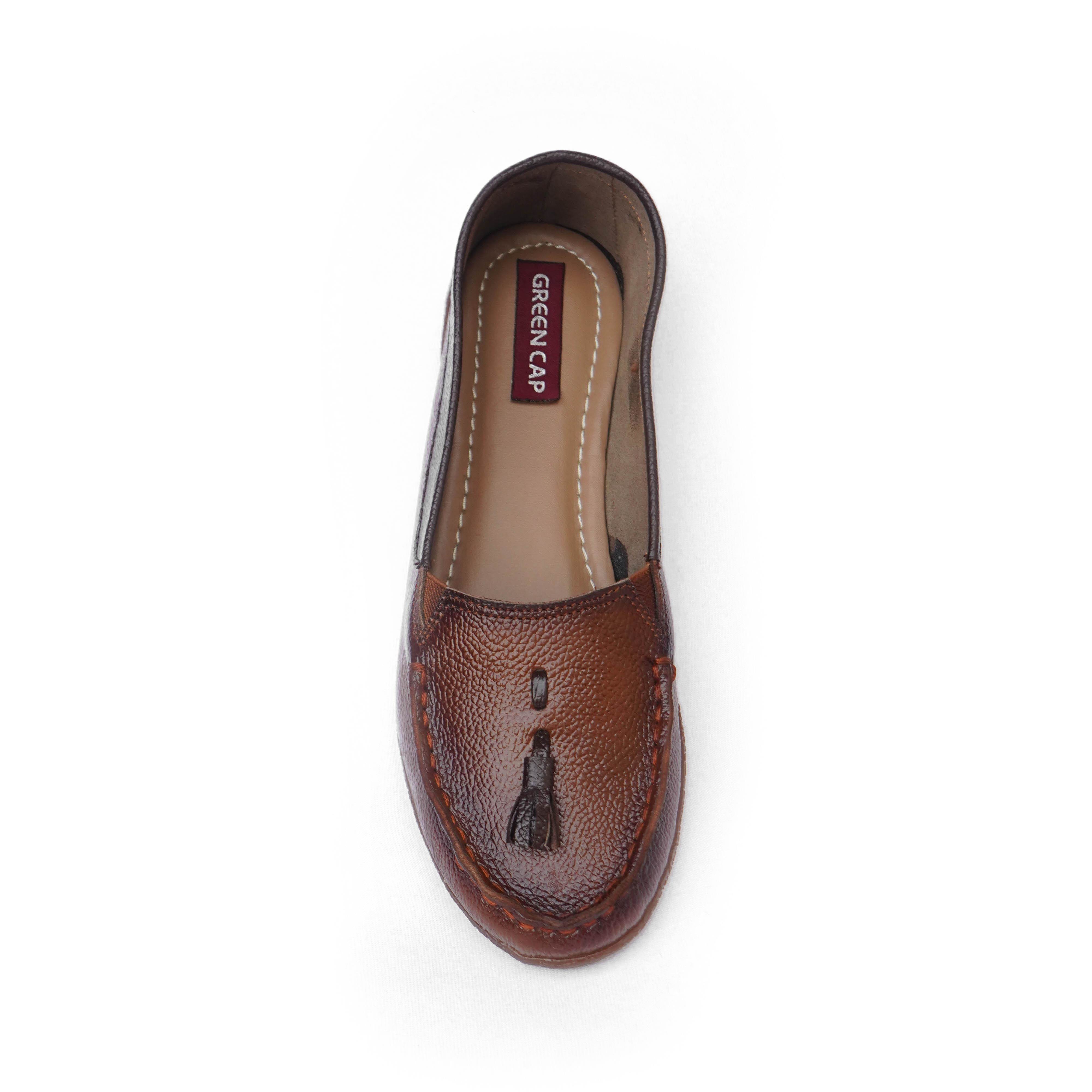 Green Cap Brand Womens Flat Slipons Leather Casual Ballerinas Belly Loafers Shoes A77-64 (Tan) :: RAJASHOES
