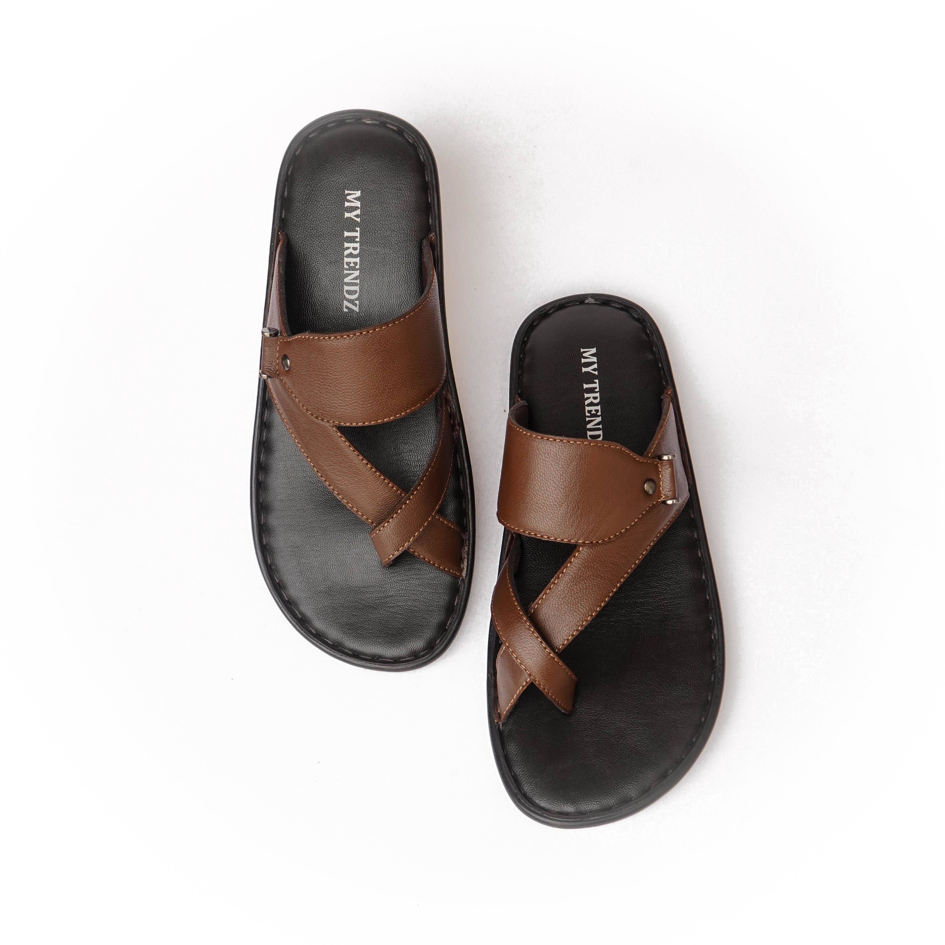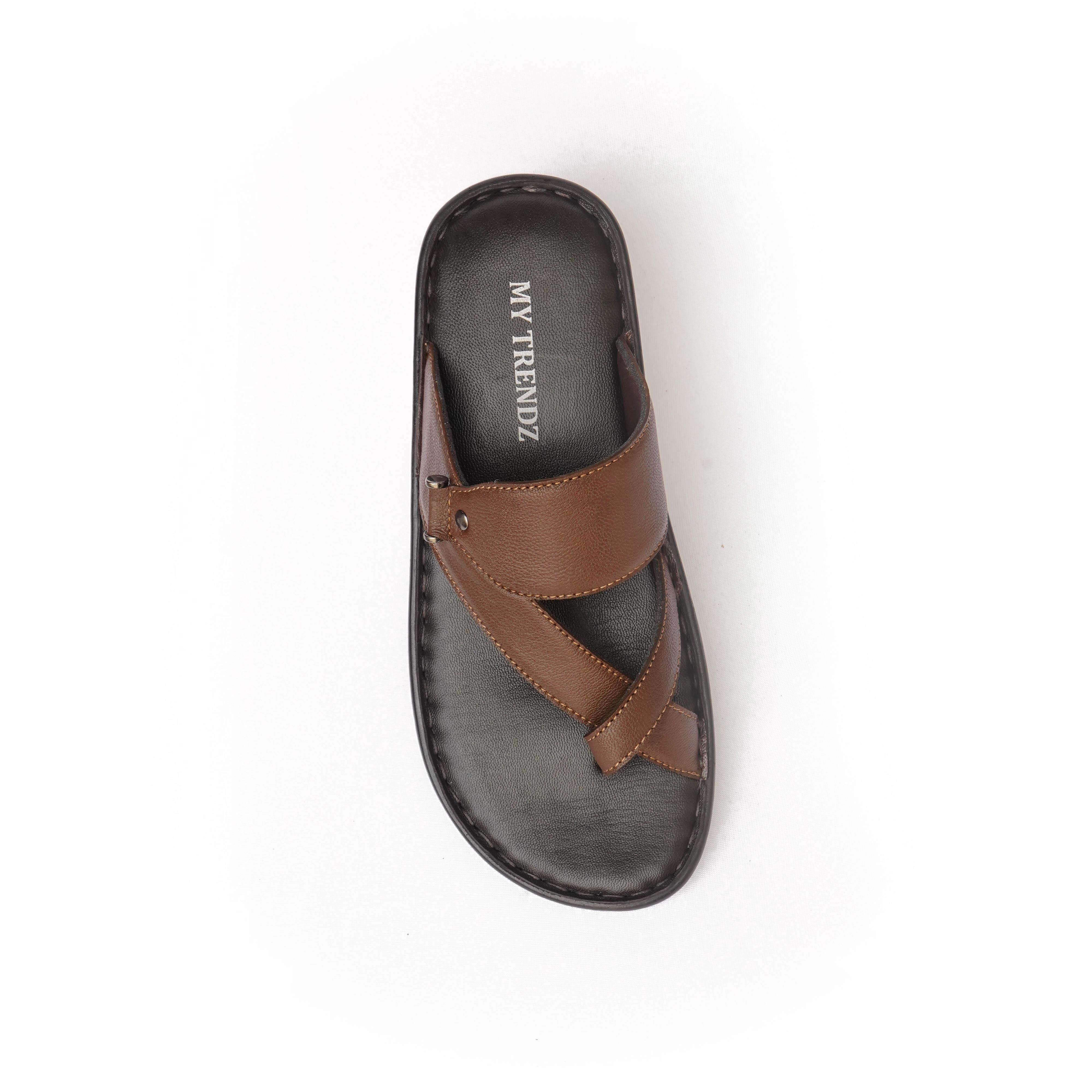 My Trendz Brand Mens Casual Soft Slipons Leather Chappal / Sandal 639 (Tan) :: RAJASHOES
