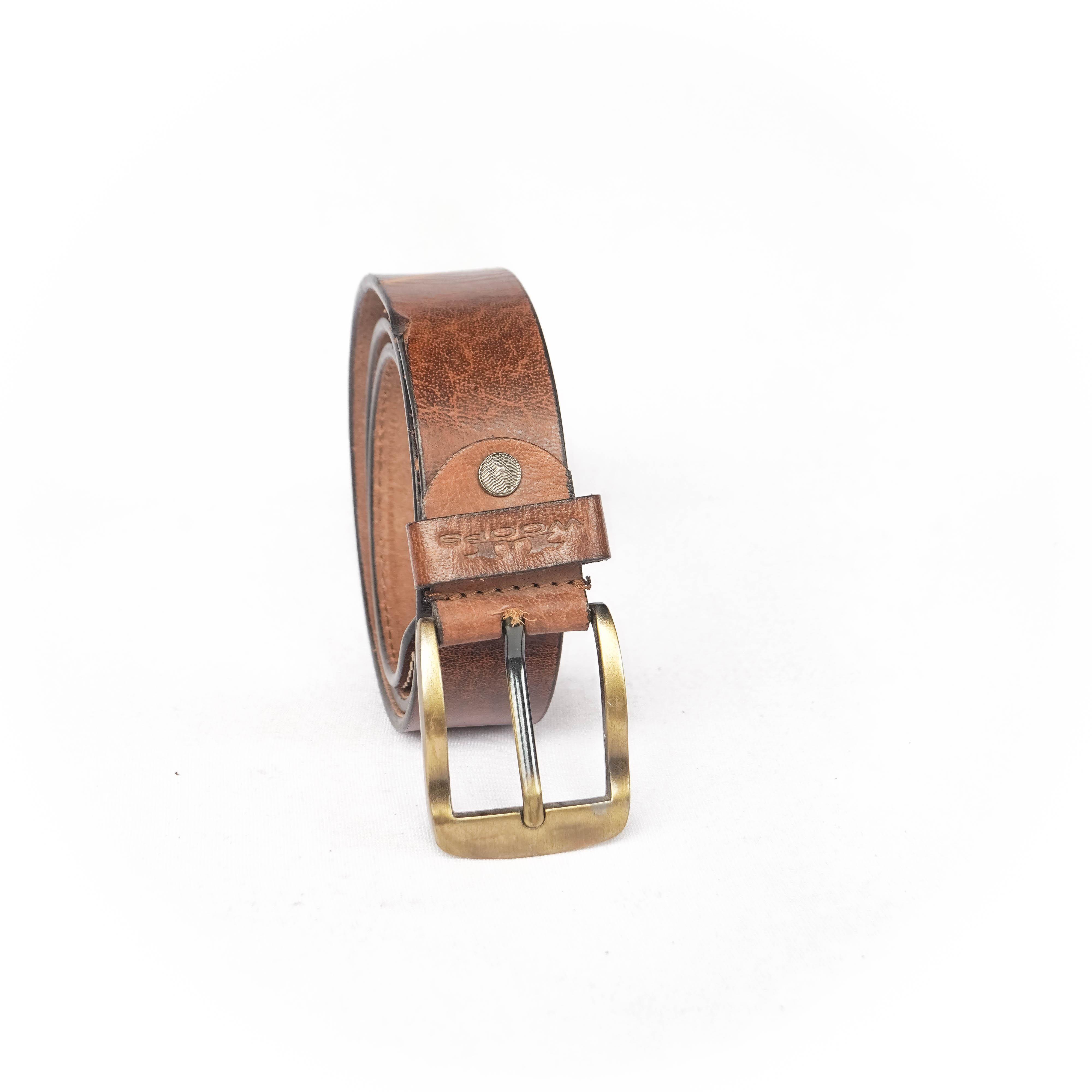 Woops Brand Mens Casual Leather Belt 227 (Brown) :: RAJASHOES