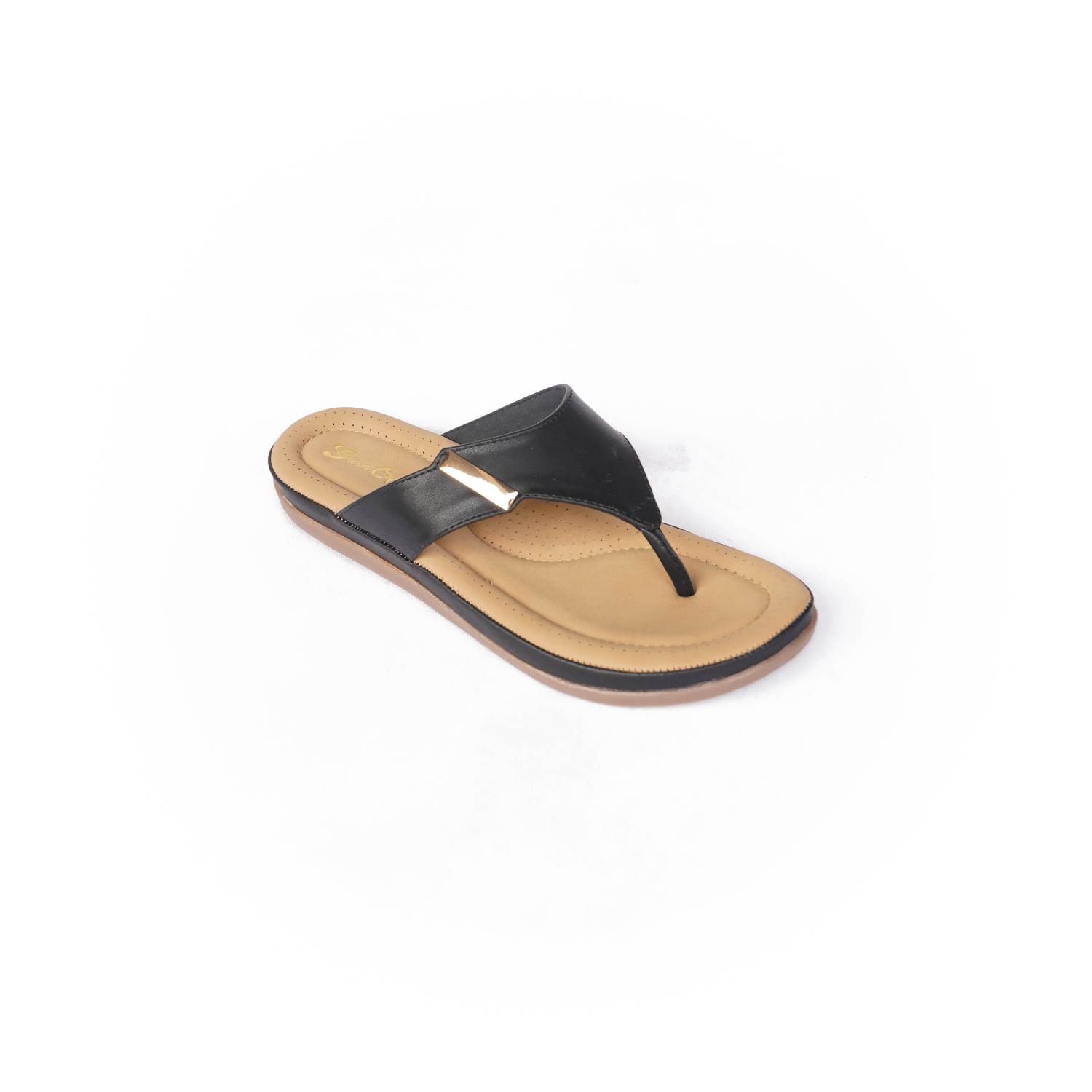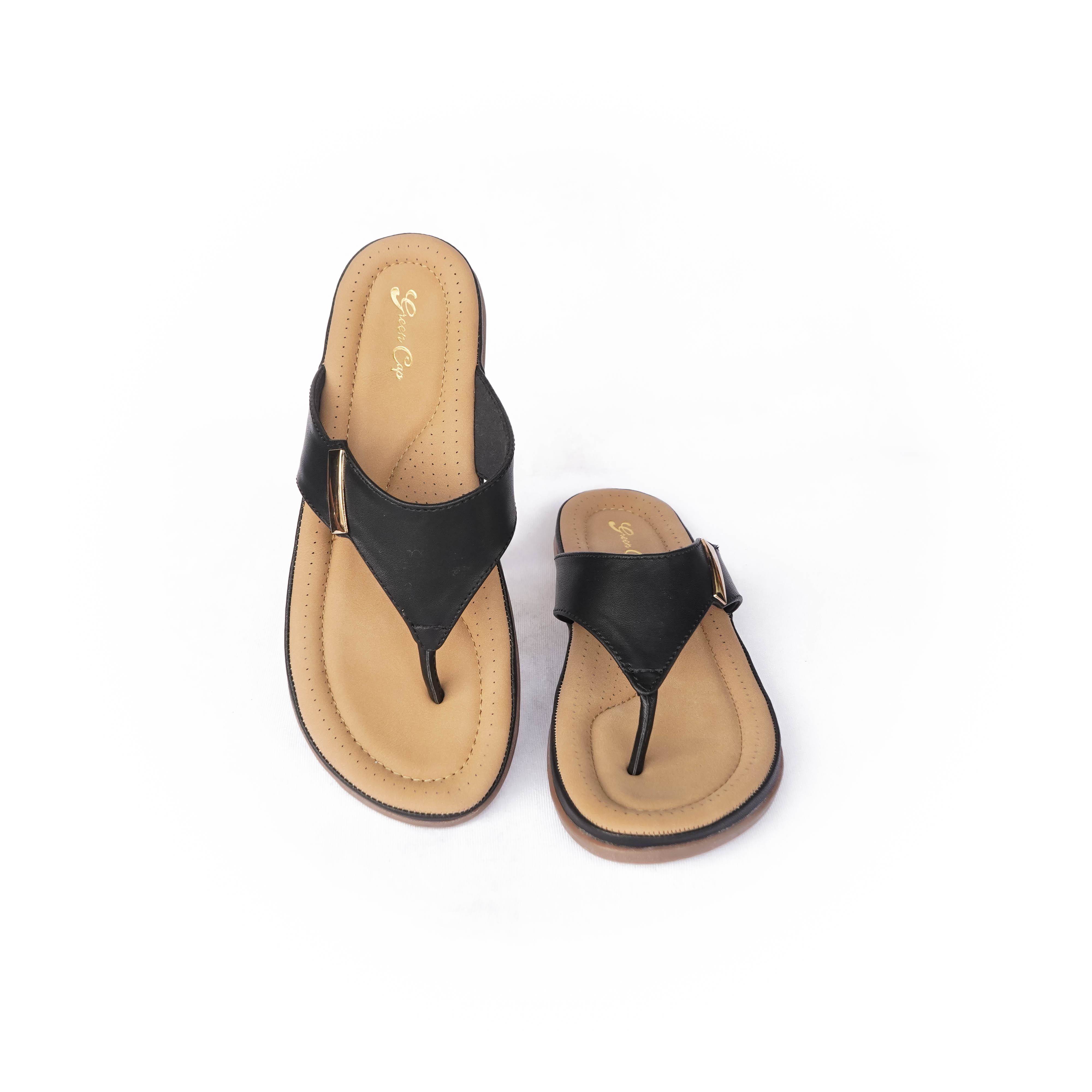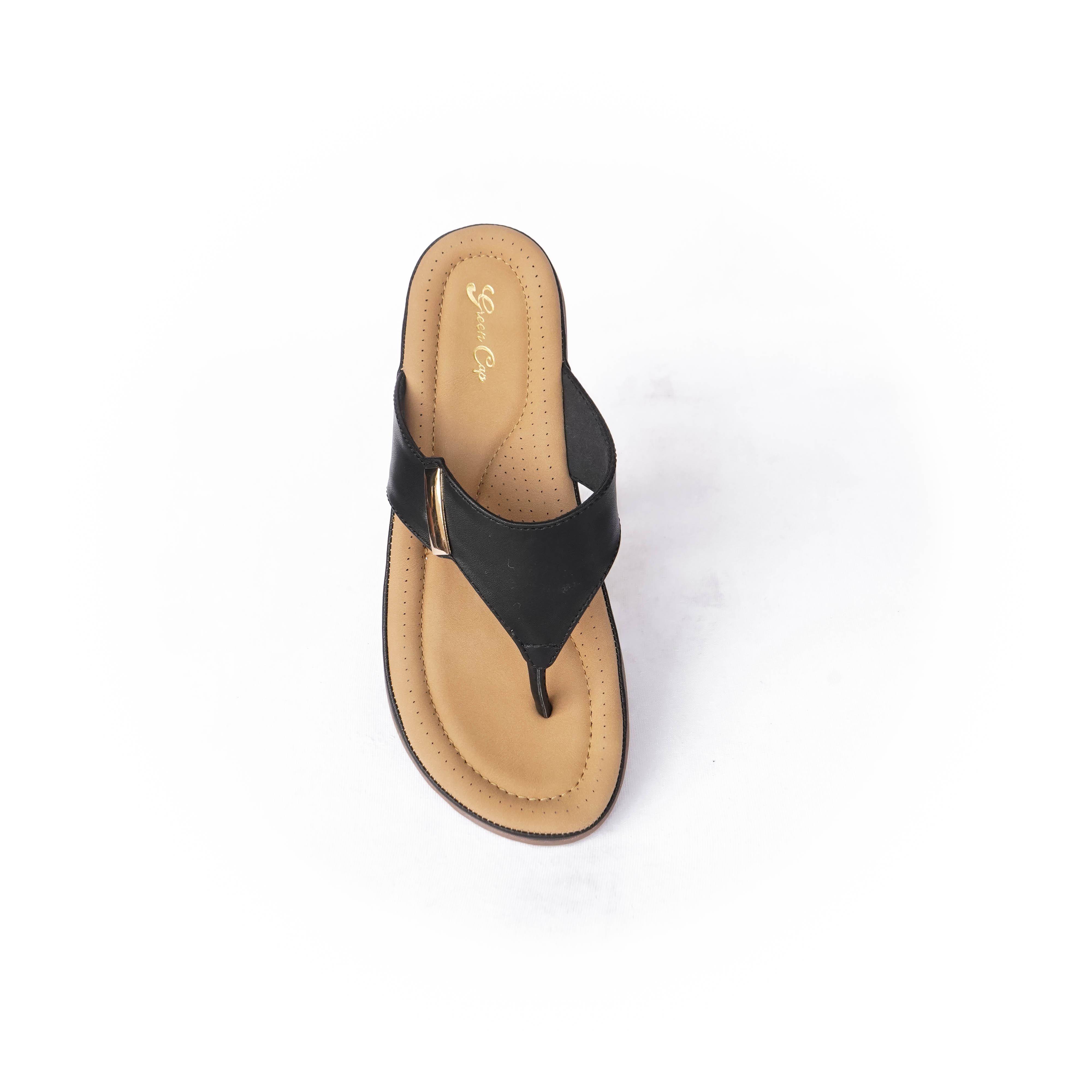 Green Cap Brand Womens Flat Comfort Casual Sandal / Slipper M94-282 (Black) :: RAJASHOES