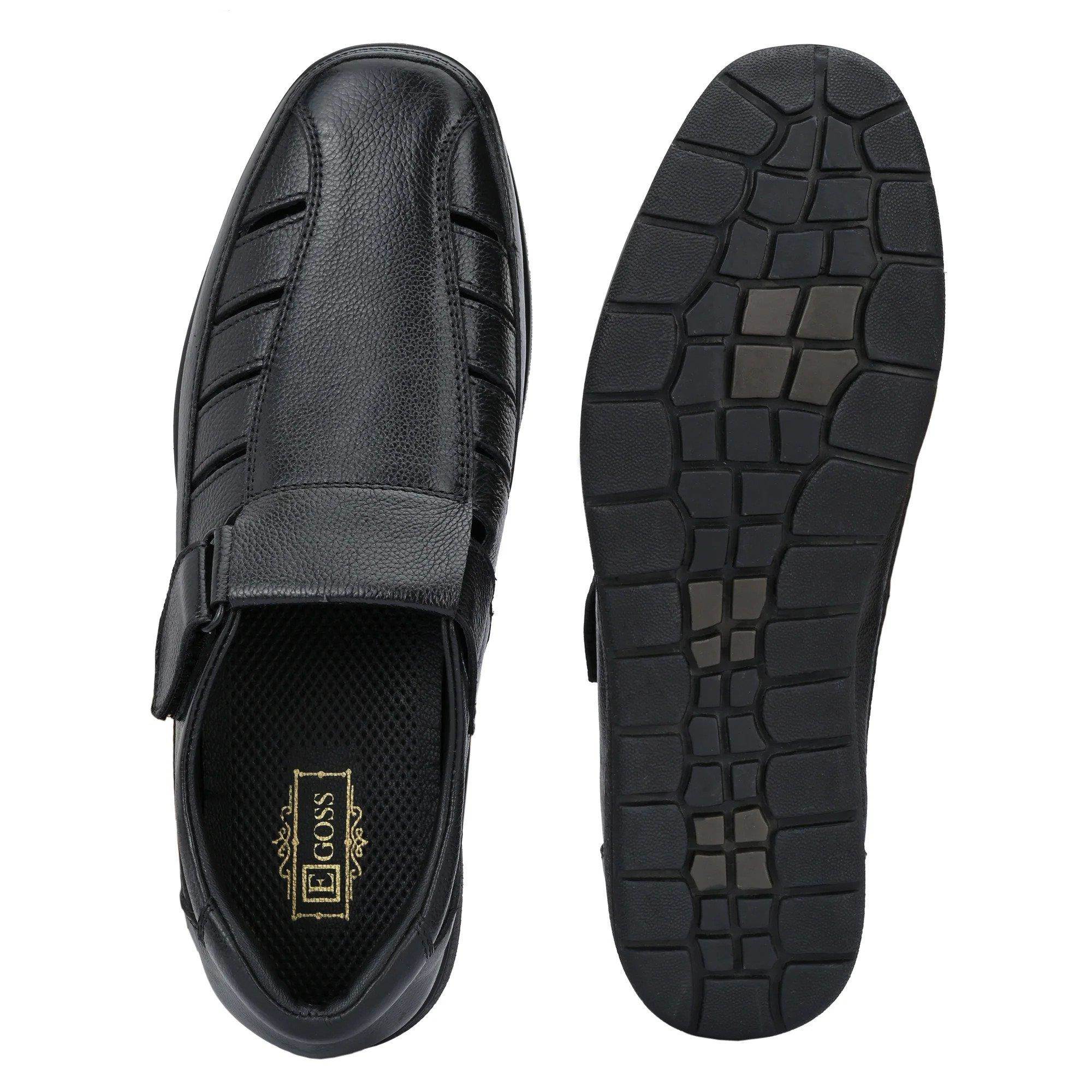 Egoss Brand Mens Leather Casual Sandal R-339 (Black) :: RAJASHOES